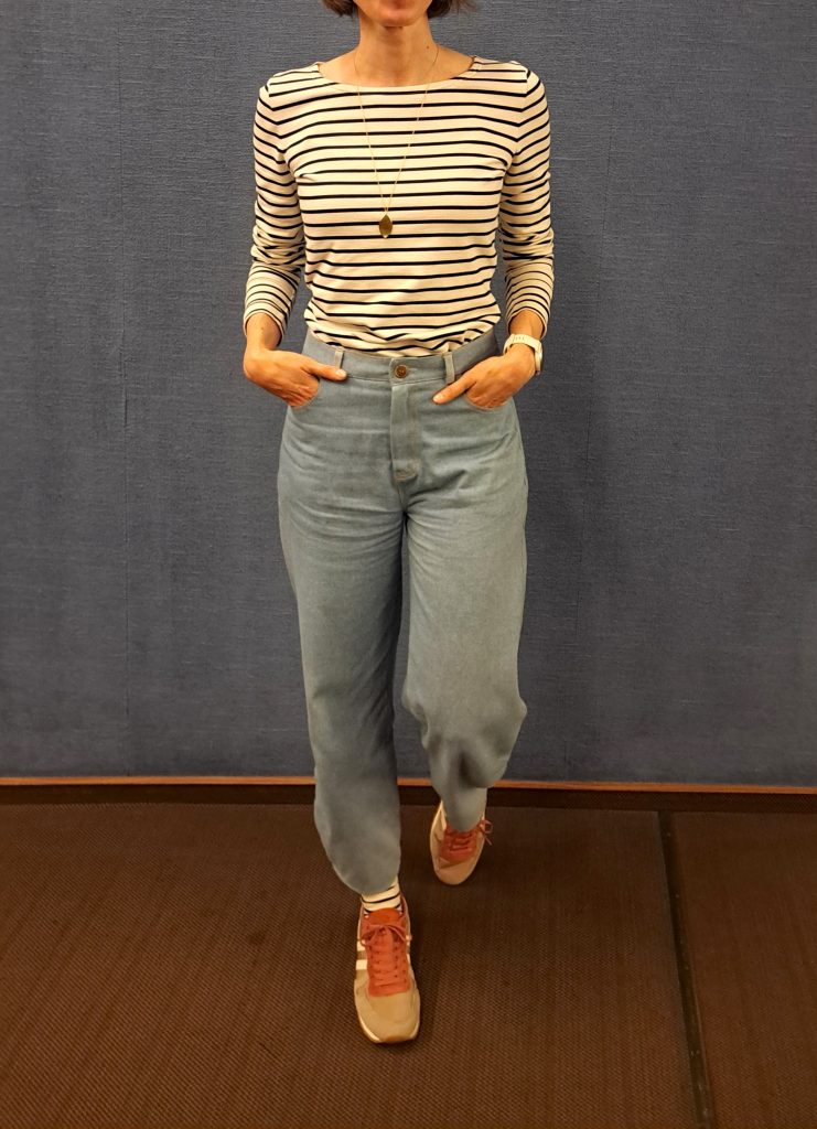 Freitags im Offenbacher Ledermuseum, in dem wir eine liebevoll kuratierte Ausstellung zum Thema Taschen sahen, trug ich mein aktuell liebstes Gute-Laune Outfit: Ringelshirt und passende Ringelsocken, hellblaue Sunshine Jeans, dunkelrote Anica Steppjacke und rote Sneaker. (Die Jacke gibts leider nur klein von hinten zu sehen, da die Bilder im Museum entstanden sind und ich nicht weiter dran gedacht habe)